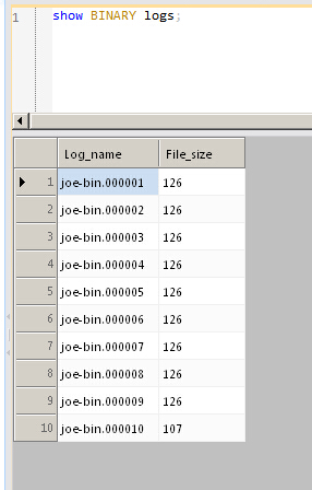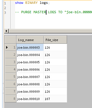 PURGE MASTER LOGS TO "joe-bin.000003";