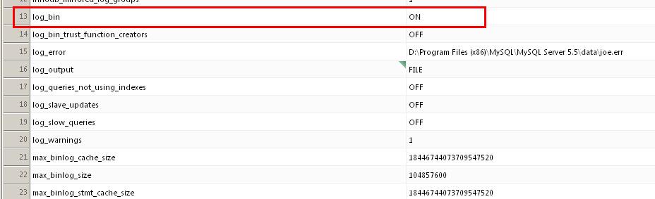 my.ini中[mysqld]组下面有几个设置是关于二进制日志的: