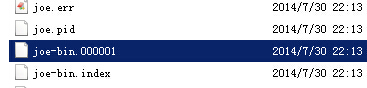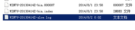 除了上述文件之外,还有一个成为filename.index的文件,文件内容为所有日志的清单,可以使用记事本打开该文件