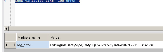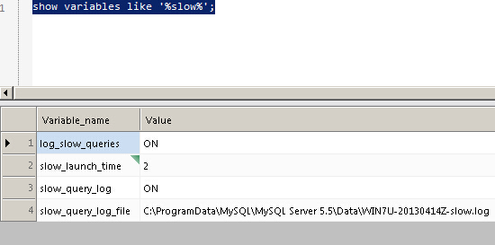 查看慢查询日志文件里的内容,使用文本编辑器打开数据目录下的WIN7U-20130414Z-slow.log文件