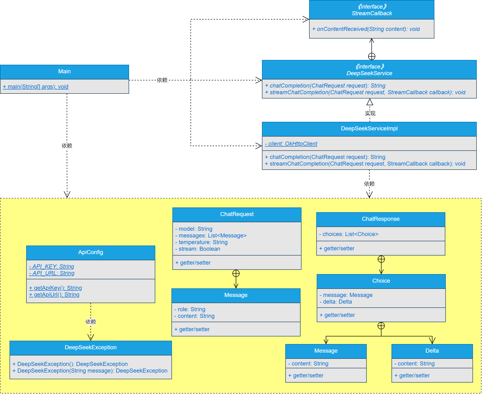 实现DeepSeek流式调用的核心类设计如图2-1所示。