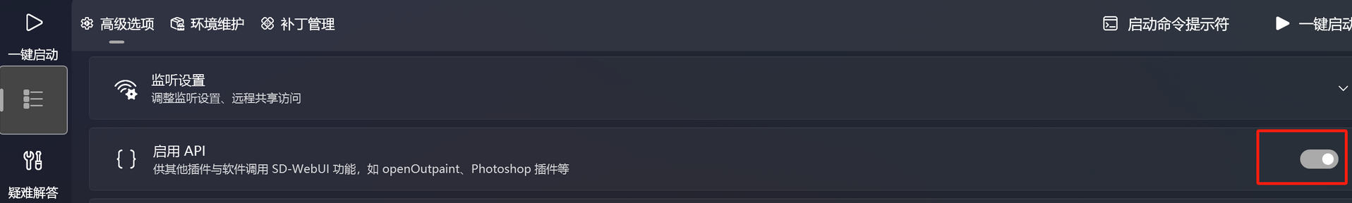 这里,使用Stable Diffusion v2.8.13版本,首先在WebUI的高级设置中启用API功能。考虑到本地开发环境的安全性需求,暂未开启API鉴权机制。