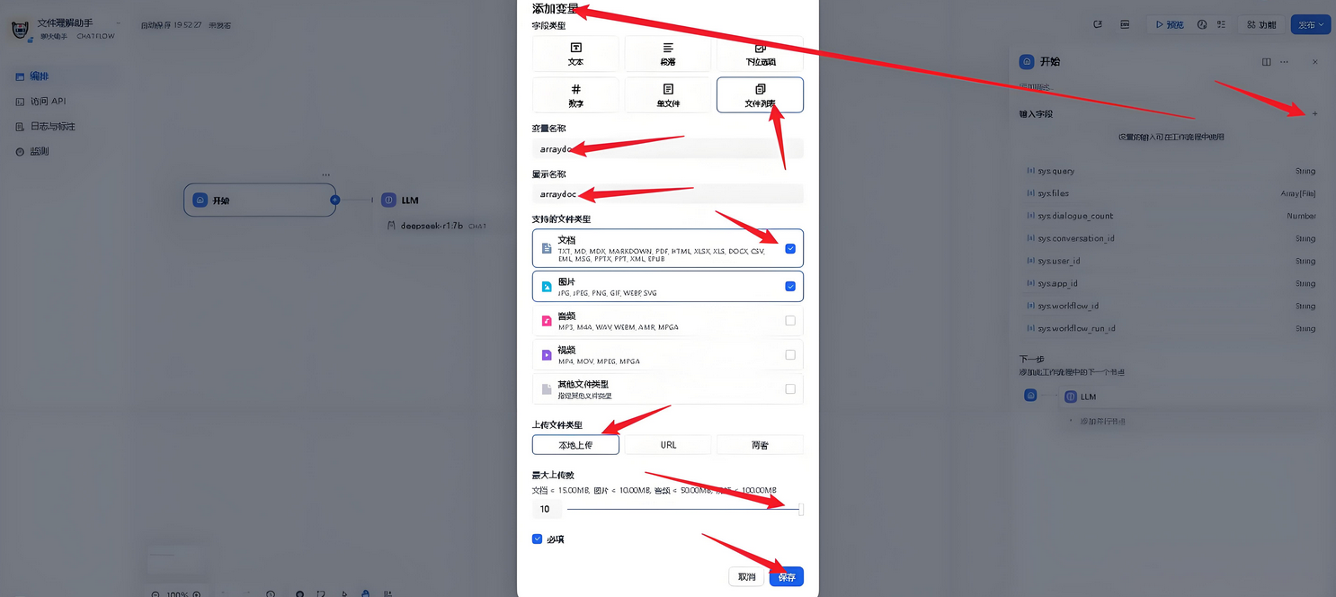 关键配置决策:选择Chatflow而非Workflow的原因在于,文档理解过程本质上是与用户的持续对话交互,需要维护对话状态和上下文关联。