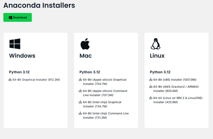canda环境(本文版本24.11.3),需要安装Anaconda编程语言平台(建议安装在别的盘符,因为安装需要占5.2GB空间)。