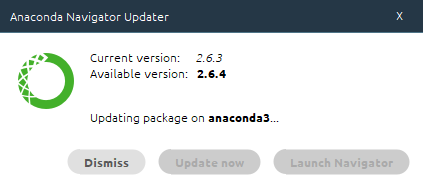 (3)Anaconda安装后提示有新版本(2.64)更新,直接更新就好,也可以忽略不更新。
