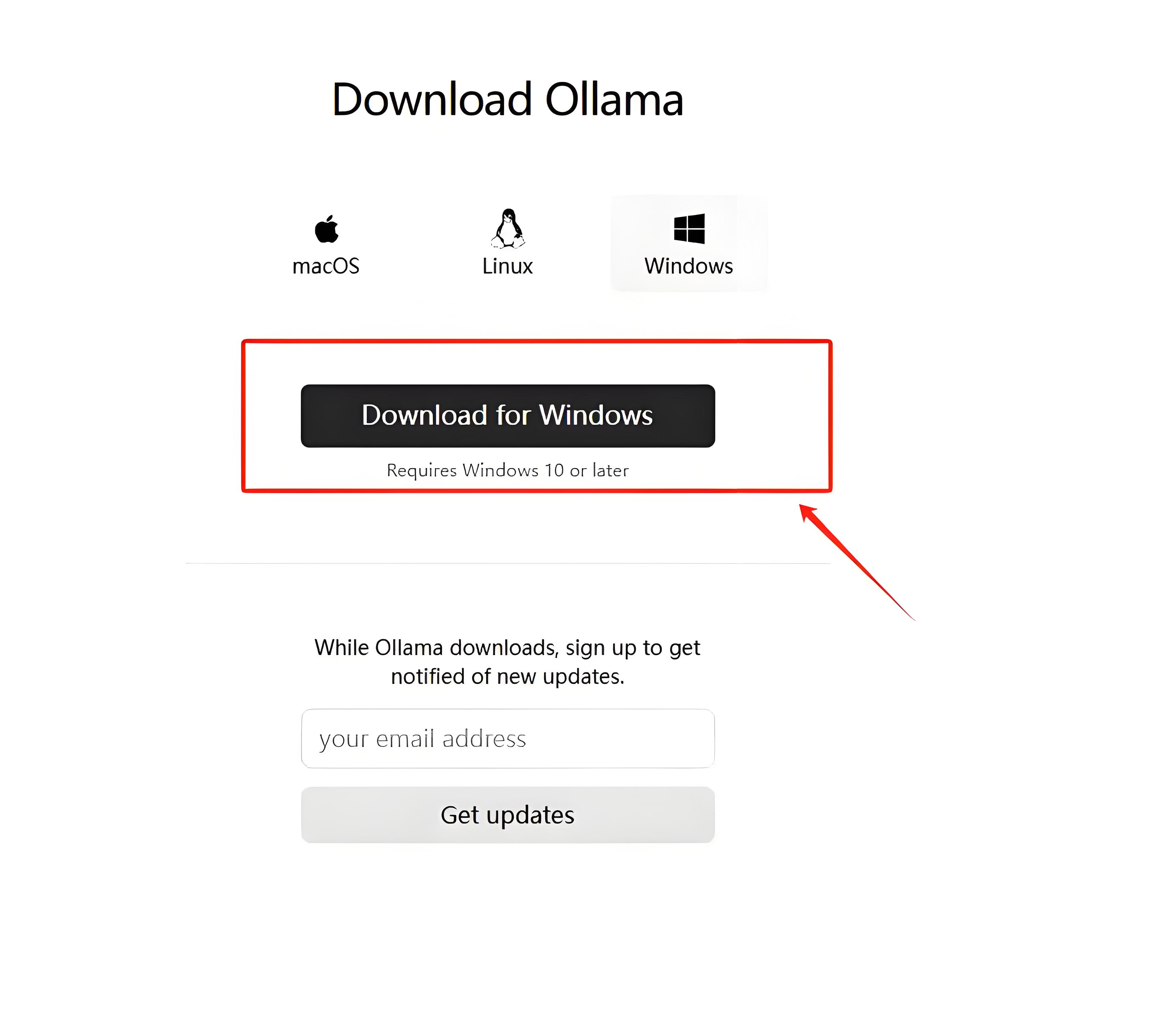 - Windows系统用户,直接访问 Ollama官网 (opens new window) 下载安装程序。