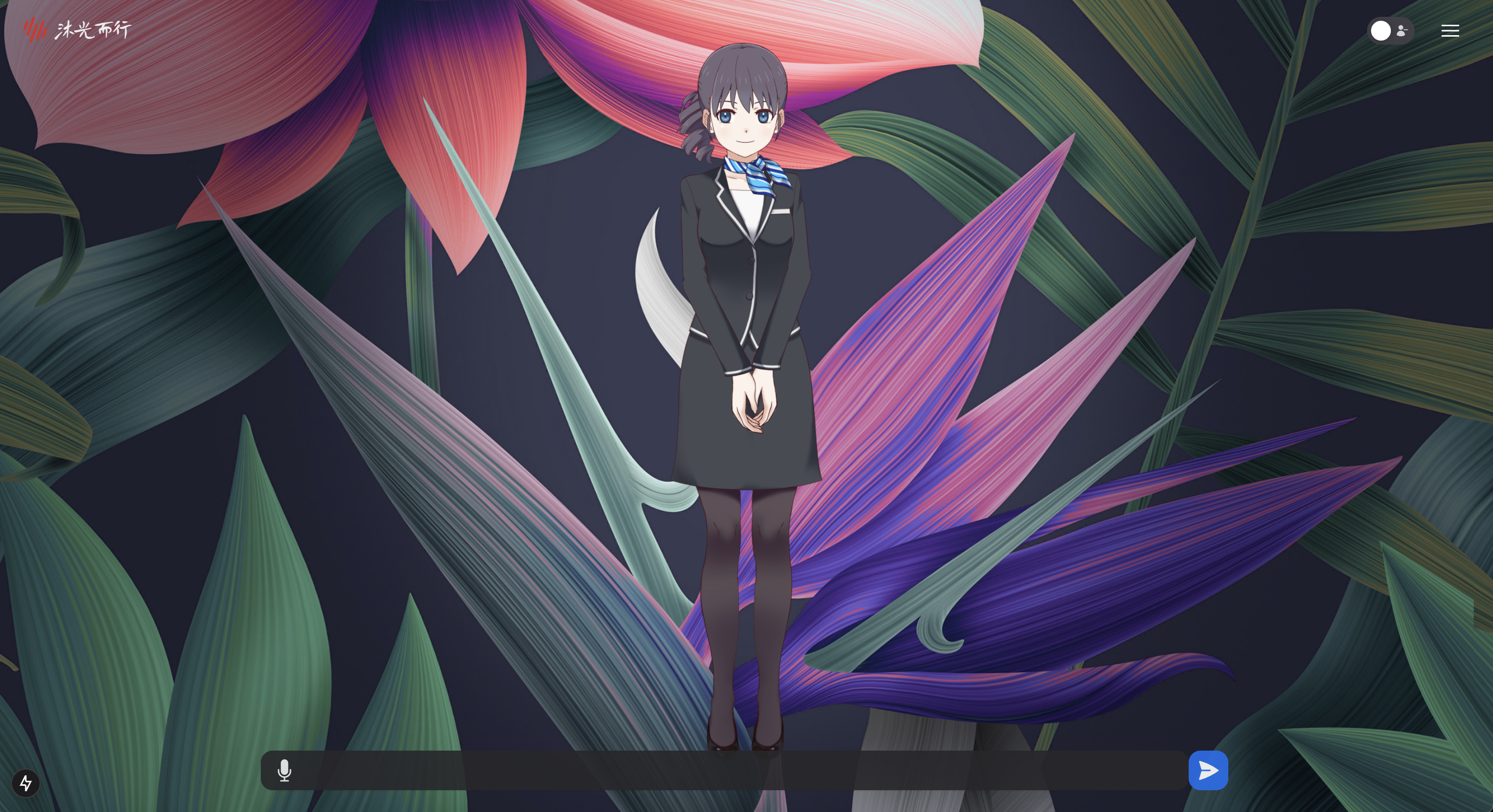 在PC端,你可以看到一个精美的Live2D角色,支持丰富的动作表情和背景切换,营造出沉浸式的对话环境: