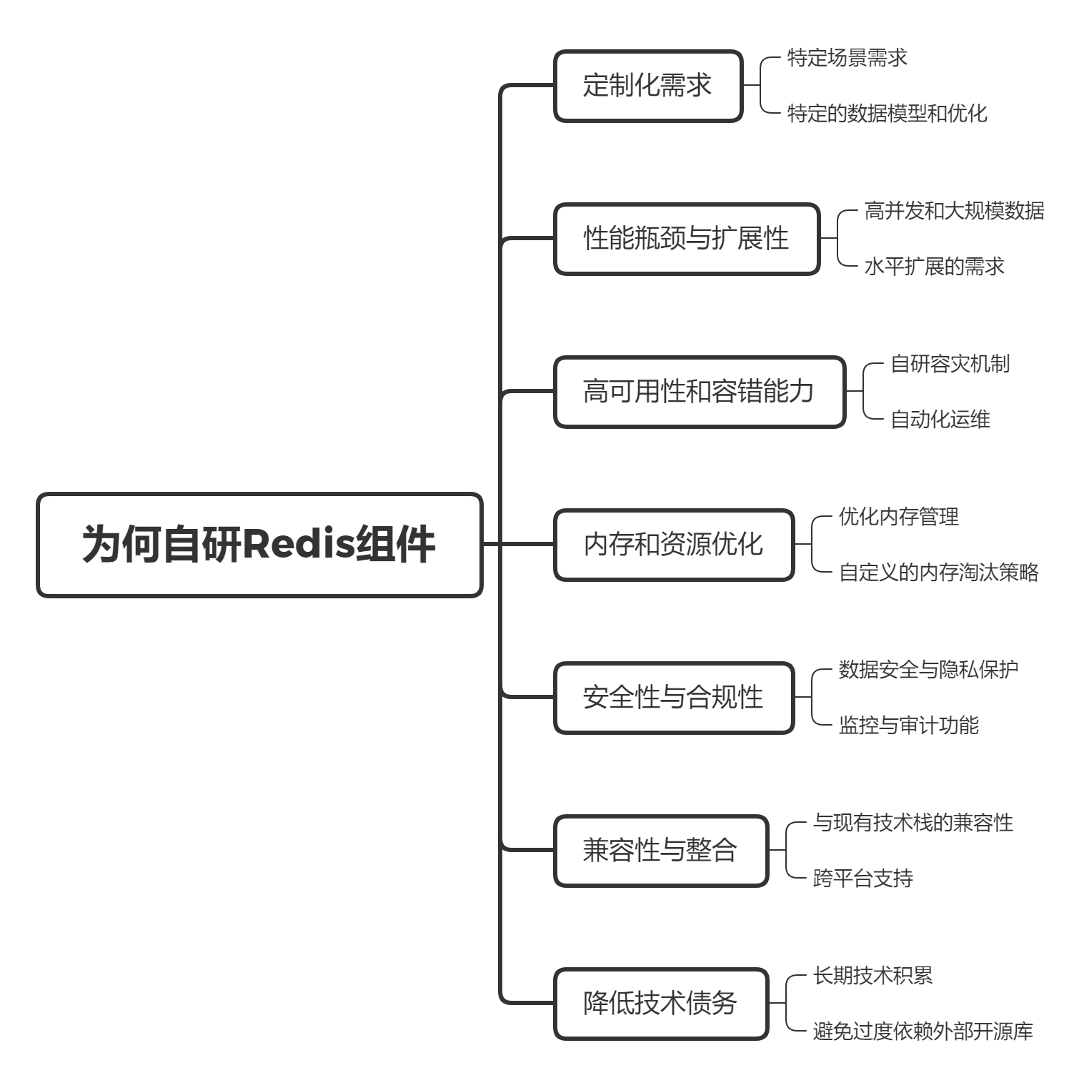 - 避免过度依赖外部开源库: 长期依赖开源Redis组件可能导致企业对外部开源项目产生过度依赖。自研的组件能减少这种依赖,并让公司在关键技术上拥有更多的控制权。