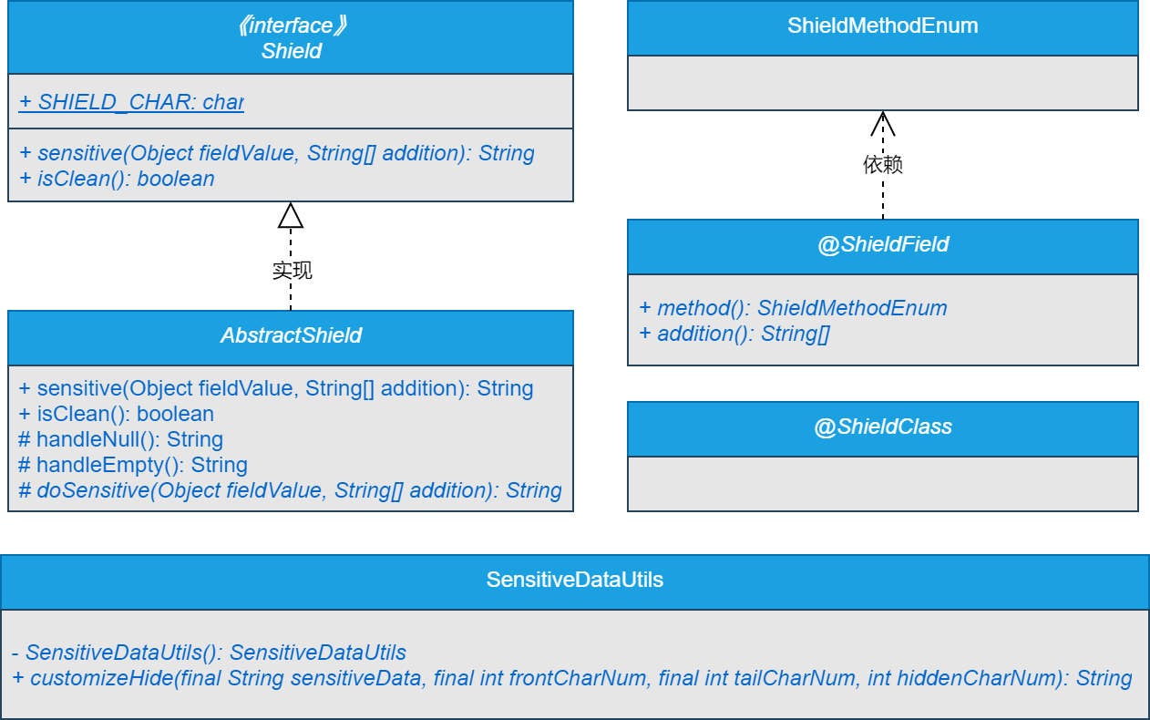 注意:本节只给大家展示高性能脱敏组件通用脱敏方法的核心类实现关系,其他代码的实现细节,大家可以自行到本节对应的源码分支进行查看,这里不再赘述。